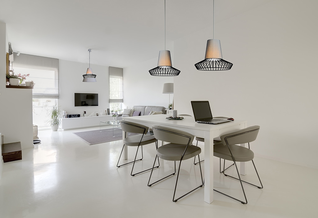 Варианты отделки светильника: чёрный никель, тёмная медь, матовый белый цвет. Абажур может быть светло-серым или тёмно-серым.