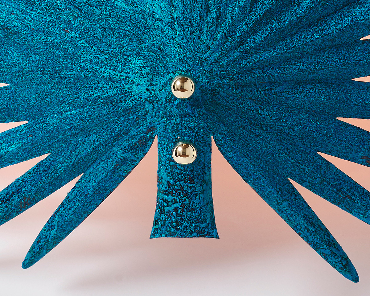 Варианты расцветки: белый/сатинированная латунь, шлифованная медь/сатинированная латунь, античная медь/сатинированная латунь, синяя патина/полированная латунь.