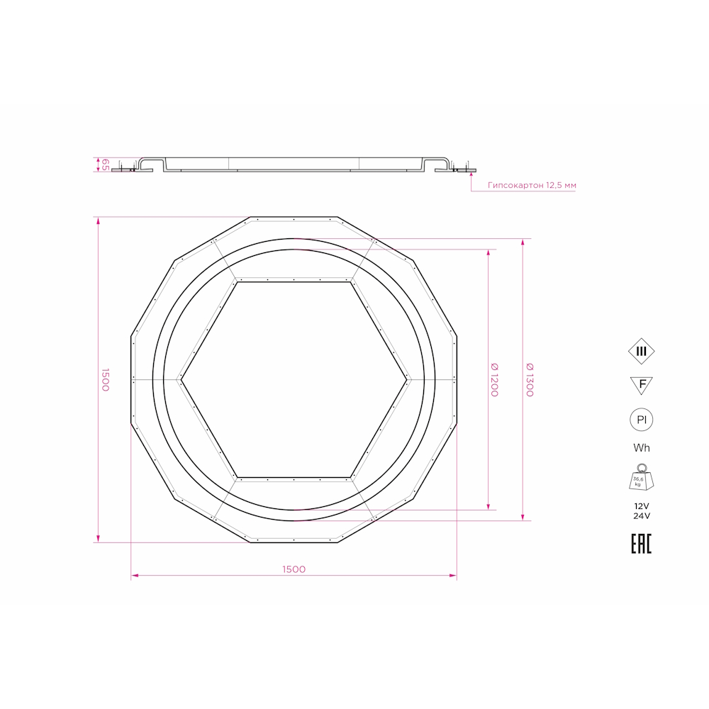 | Габаритные размеры (Д/Ш/В): | 1500/1500/65 мм |
