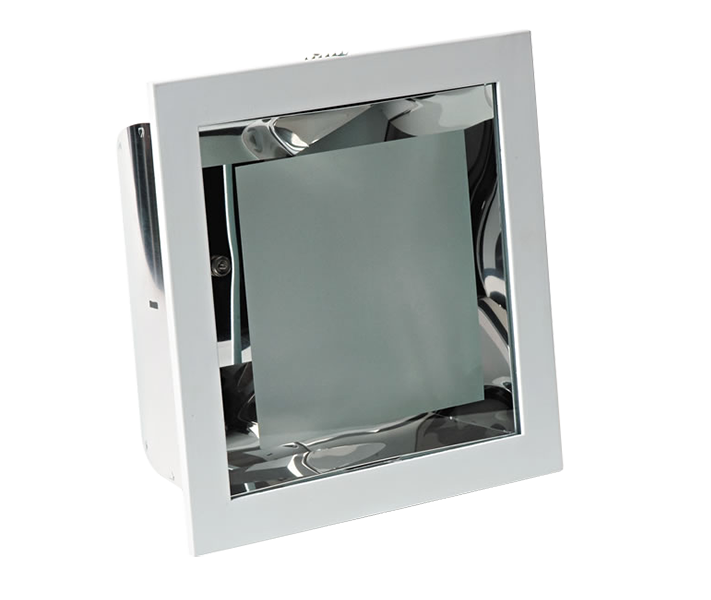 Встраиваемый светильник для двух компактных люминесцентных ламп мощностью 18 Вт / 26 Вт, под электронный ПРА или для двух интегрированных компактных люминесцентных ламп мощностью от 15 до 26 Вт (Е27). Литой алюминиевый корпус. Отражатель из шлифованного алюминия. Рассеиватель из матового стекла.